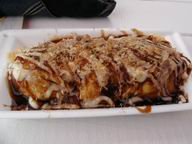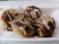 たこ焼き自体の味は薄めでこんにゃく入り。とろんとろんの大玉たこ焼きはソースの味がよくあう。