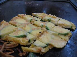 今回はじめて食べたのが、韓国かぼちゃのチヂミ。韓国かぼちゃは、まだ種ができないうちに食べるので、ズッキーニのような感じです。チヂミというと、韮チヂミのイメージがありますが、白身の魚や韓国かぼちゃなど淡白な味のチヂミがおいしいです。