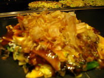 このふわふわに焼きあがったお好み焼きは絶品。少し甘目のソースと甘く煮込んだすじ肉の味がマッチして、おいしいです。中央部はポテトが入っていて、より柔らかくなっています。この食感は他の店では味わえません。