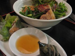 ラオカウ(たれうどん)、ゴイクン(生春巻)などのセット。香辛料の香りがお昼から、ベトナムへといざなってくれるように感じました。