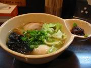 塩ラーメンの専門店ということで、「鶏魚塩ラーメン」を注文。お店の前に「これでおだしをとっていますよ」と煮干しや昆布のだしがらが置かれていたのも、お店の心意気というところでしょうか。しっかりしただし味がおいしいです。海辺にしばらく住んでいた私には、塩ラーメンに海苔が乗っているとそれだけでおいしく感じてしまいます。私には少しだけ香辛料が強めかな。