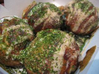味は、塩味のスープがおいしい。そして右側にあるたこ焼き(名前を繁盛丸)は、中にしょうゆ、とろろこぶなどが入っていて、途中でスープの中に入れるとしょうゆ味にチェンジ!いっぱいで2度味が楽しめるという優れもの。メチャメチャ面白いし、おいしい。