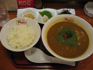 久しぶりに南森町の日本唯一のカレーラーメン専門店「ミスターパピー」さんへ。今回は一番スタンダードなビーフカレーラーメンをお願いしました。ラーメン+カレーというこってりとした組み合わせでありながら、いくらでも食べられそうな感じがする美味しいラーメンです。ここのお勧めは、麺を食べ終わった後のスープにご飯と温泉卵を入れて食べるカレークッパ。これがまたおいしく、スープを最後の一滴まで食べつくせます。一緒に行った素敵な女性は、マンゾクしてくださいました。