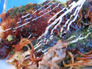 お好み焼きは、伏見にお店のある「ビックリ」さん。「魔法のビックリ玉手箱」というお好み焼きが食べられます。中に餅、そばなどが入った豪華版。おいしかったです。