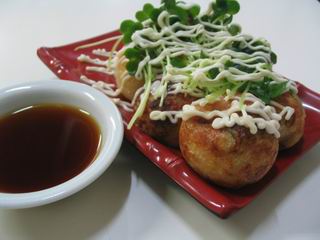 たこ焼きの生地にしっかり味がついているのでそれだけでも美味しいですが、そこにかいわれとマヨネーズがのってそれだけでもさっぱりとしてさらにいい感じ。ポン酢を使うとまた味が変わってさらに食が進みます。