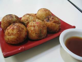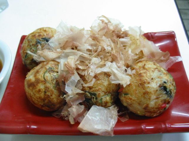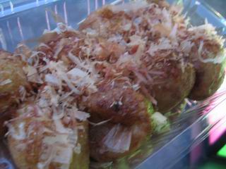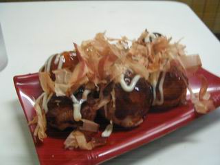 たこ焼きを注文するとかつおの香りがいい感じ。ここはソースでなく醤油でお願いしました。