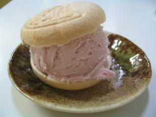 食事の後には、もう一つの名物アイス最中。春だけのメニュー桜味を注文。桜餅のあの風味がアイス最中になっていました。これまたおいしかったです。