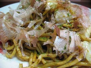 美人姉妹で有名なお店ですが、今は親子で、お昼のお好み焼やたこ焼きだけでなく、定食なども出していらっしゃいます。ちょっとたこ焼きを食べ過ぎているので浮気して焼きそばを注文。懐かしいような焼きそばがいい感じです。
