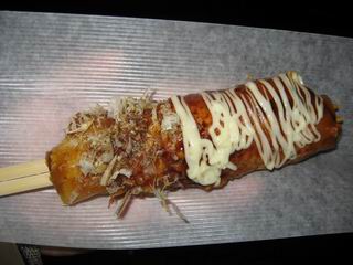 その中でしばらく前から気になっていたのが「はしまき」。濃い目のお好み焼きの生地をクレープ状に焼き、割り箸に巻きつけたものです。確かにお祭りなどで持ち歩いて食べるには便利。中身は天カスとしょうがしか入っていなかったみたいでした。