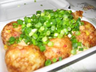 十三のカリトロさんに季節限定のたこ焼きがありますが、春〜秋にかけては、「ごまマヨネギ」たこ焼きです。