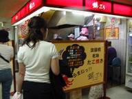 たこ焼きともちいりたこ焼きを注文。小振りでカリットしあがったたこ焼きはそのままでもおいしいのですが、ソースともよくあっておいしい。餅入りはしょうゆ味にしてもらいましたが、餅が入っているというよりたこ焼き全体がもちっとした感じに仕上がっていて、外のカリットしたコントラストが絶妙。おいしかったです。