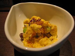 たこ焼きはくくるさんのトロトロでおいしいたこ焼き。それにいもたこなんきんを中心にしたサイドメニューも豊富。三種のヘルシー豆となんきんのサラダを食べましたが、豆の食感、なんきんの甘みがたこ焼きやお酒とよくあいます。