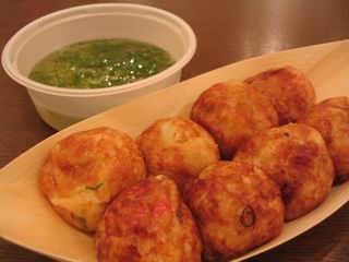 しっかりしただし味のたこ焼き。今回はねぎ+ポン酢でそのたこ焼きをあっさり仕上げに。