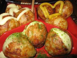 たこ焼きの中に入っている下味がしっかりついた山芋の味と食感がいい感じ。素焼きでももちろんおいしいが、ソースと一緒だとなお味が広がった感じがする。