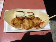次は反対側の端、たこ焼十八番さんへ。ここの天カスでサクッとした食感のたこ焼きでありながら、ダシと牛乳が入っているという濃厚さ。ソースをかけるのが一番いいと思います。サクサク感でいくつでも食べたくなりますが、残り2軒を頭において個数を選んでくださいね。