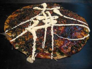 さて洋食焼ですが、ねぎ、牛肉、ちくわ、煮込んだコンニャクなどが入ったねぎ焼き(風)でおいしい。大仏焼にはさらにえびやいかが入るそうです。