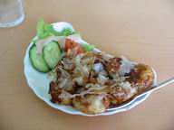 園田にお店を出すようになったのが、今年の4月。そのときからメニューに加わったお好み焼も注文。たこ焼きの味から期待しての注文ですが、期待通りのおいしさでした。シンプルですが、生地がキャベツの甘みとしっかりだし味でおいしい。この味でこの値段は破格です。
