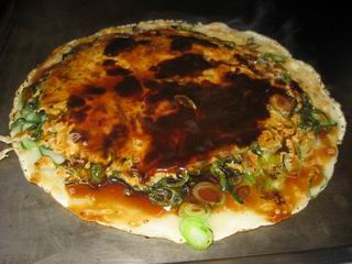 お好み焼のメニューも豊富でしたが、すこし珍しい「鳥ごぼう」を注文。まん丸なお好み焼で、あまりの丸さに鳥つくねのハンバーグかと見間違うほどでした。
