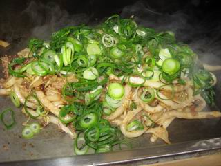 たまたま、電話で注文が入り、おいしそうだったうどん焼きもお願いしました。大阪では焼きうどんというのですが、長田ではうどん焼きなんですね。「みずはら」さんでは、キャベツは千切り。それでキャベツの甘さを抑えているんだそうです。オプションでねぎをタップリのせてもらいおいしかったです。