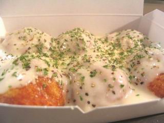 まず、放送時に紹介された「デミグラスソースたこ焼き」。たこ焼きがだし味が薄めなので、その分洋風のソースがよく合って、なかなかいけます。「タコクリームコロッケ」を食べているような感じがします。
