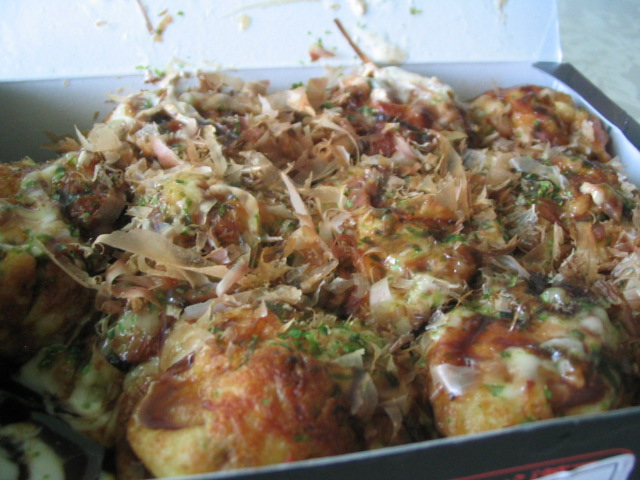お店では食べる場所がないので、たこ焼きを買って帰りました。くくるさんのたこ焼きはいつもとろとろでいい感じですね。