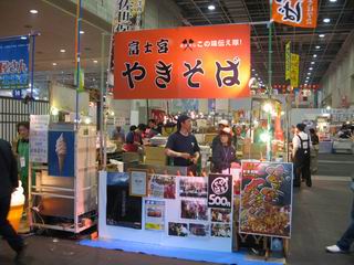 まずは、B級グルメの祭典、B1グランプリで二年連続1位をとった富士宮焼きそば。6号館の入り口のところでオープン直後はすぐに買えたのですが、その後ずっと行列を作っていました。