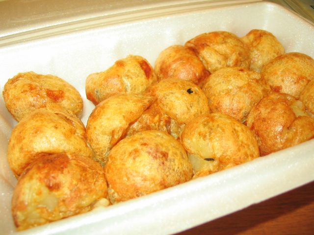 天保山マーケットプレイスの「なにわ食いしんぼ横丁」には、大阪の粉もんの老舗がお店を出店されています。たこ焼きでは、会津屋さん。昭和8年にたこ焼きをはじめたお店として知られています。30年ほど前に「旅」という雑誌で当時の会津屋さんが紹介されていたのを憶えています。