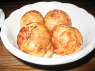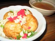まずはスープたこ焼きのミネストローネ。野菜たっぷりのミネストローネスープに浮かんだたこ焼き。気分はちょびっとイタリアンです。