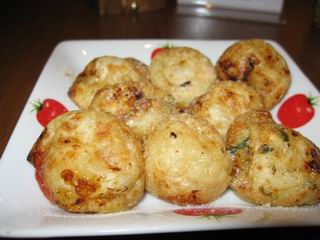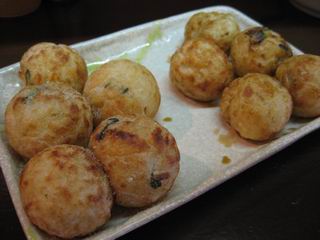 8個注文して、半分は塩味に。塩は、カウンターの上においてある岩塩。外は程よくカリッと中は少しとろみががかる手前まで焼きあがっていていい感じ。たこ焼きの生地にしっかり味がついているので、塩味がおいしいです。