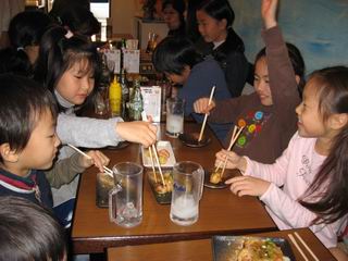 そして野菜入りの「ベジたこ」から、焼トマト。ほんのり酸味のトマトが中からじゅわっと出てきます。こだわりの塩がかかって、これがおいしい。トマト柄のお皿がまたおしゃれですね。女子校生なんかにも人気だそうです。
