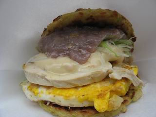 食べながら気がついたのですが、ライスバーガーって粉もんじゃない・・・ですよね。(^^;;