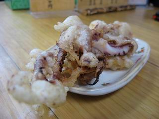 オススメにしたがって、うどんはひやひや+イカの天ぷら。うどんには、これでもかというぐらいコシがありながら、のどごしがいい。おだしもかつおのいい香り。以前はもっといりこだしが強かったそう(そんな記憶も・・・)ですが、おいしいおうどんでした。