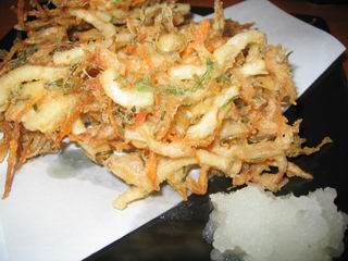 お店の方のオススメの「かがり火天うどん」をお願いしました。うどんは「ヒヤヒヤ」で。かなり腰が強くて、なるほど本場讃岐を感じさせるうどんです。おだしもいりこと昆布のおいしいおだしでした。東京ではこの味は珍しいんだそうです。